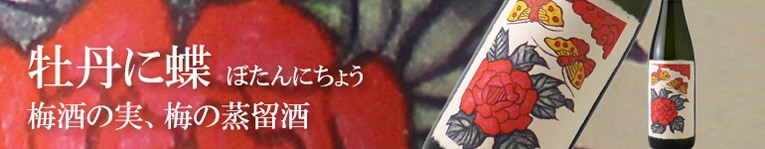 「牡丹に蝶」は梅酒を漬けた後の梅の実を蒸留したものです。とろとろの梅酒や花札梅酒でおなじみの八木酒造だからこそできる、贅沢な蒸留酒です。