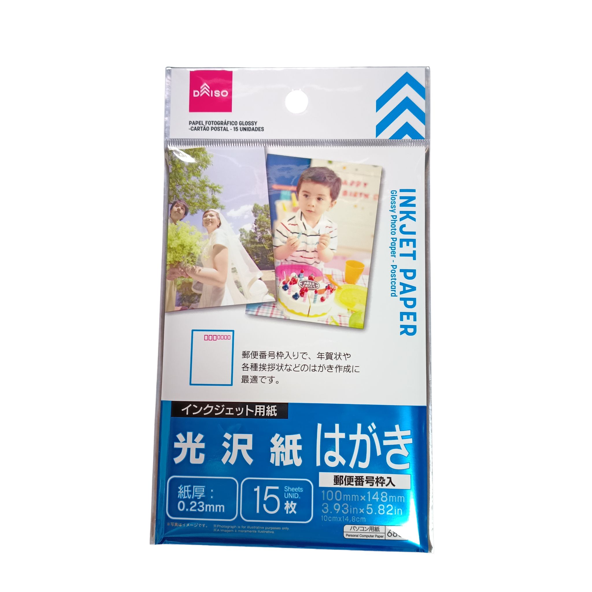 インクジェット用紙 はがきサイズ 光沢紙 15枚入り 0.23mm 厚手 郵便番号枠入り 写真印刷対応 年賀状 挨拶状 DIY印刷用 ダイソー Daiso