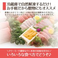 | お召し上がり方・注意事項 | こちらの商品は、ブランチウニです。 生冷凍ウニとは違い、ウニの表面を数秒間ブランチング(瞬間煮沸)することにより、解凍時の溶解を防ぎ、食感を保つことを主な目的に行っております。 |