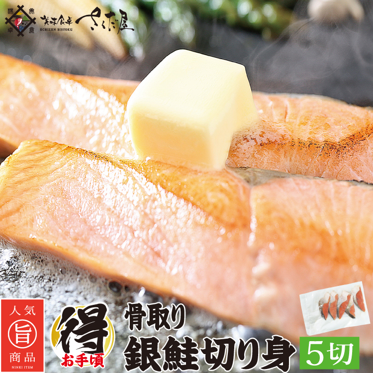 骨取り銀鮭 生サケ切身5切入り ギンザケ 冷凍便 お年賀 お歳暮 爆買