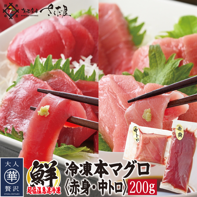 本マグロ 中トロ・赤身セット 各100g 合計200g 刺身 鮪 ブロック 解凍レシピ付でお届け 冷凍 お年賀 お歳暮 爆買