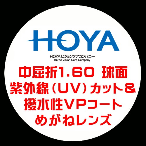 HOYA ホーヤ 眼鏡レンズ交換 中屈折1.60 球面設計 紫外線UVカット 撥水VPコート