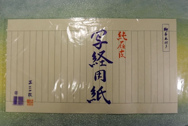 | 写経について 経典(般若心経)を書き写すことにより、功徳を得るのが目的です。 写経用紙で般若心経が多いのは、 ・ほとんどの伝統的な仏教宗派が般若心経を経典としていますので、汎用性があります。 般若心経を経典としていないのは、浄土真宗のみです。 ・般若心経は、262文字に仏法が集約されています。 262文字を写経するのに、店主(私)が初めて写経に掛かった時間は40分なので、手軽という表現は仏罰が当たるかもしれませんが、何冊もある経典を写経しようとすると、何か月も、何年も掛かります。 写経の思い出 初めて写経をしたのは、三千院(京都市)で、何も考えずに意味合いも考えていませんでしたが、エアコンも無い時代に蝉しぐれの中、写経をしていると集中力が増し、全く暑さを感じませんでした。 信仰心はありませんし、般若心経の意味も解りません。 しかし、「写経とは良いものだなあ」とつくづく感じました。 もう1つは、薬師寺元管主 故高田 好胤(たかだ こういん)さん。 薬師寺の伽藍の再興のために、拝観者に1枚150円(正確な値段は忘れました)で写経をしてもらい、その収益で再建費に充てる資金にされた。 とかく、寄進や寄付を求める寺が多い中、高田 好胤さんの手腕はすごい方でした。 本来は、写経したものを、お寺に収めた印に、御朱印帳に揮毫と印を貰います。 その証拠に、御朱印帳に揮毫する場所を「納経所」と言います。 | ||||||||||||||||