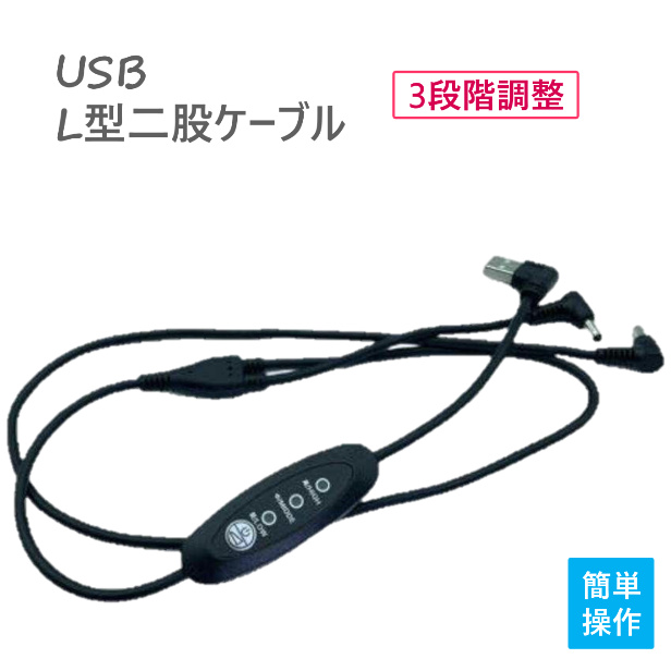 3段階スイッチ付きUSB式ケーブルなのでお持ちのモバイルバッテリーで空調ウエア用として使用可能になります!