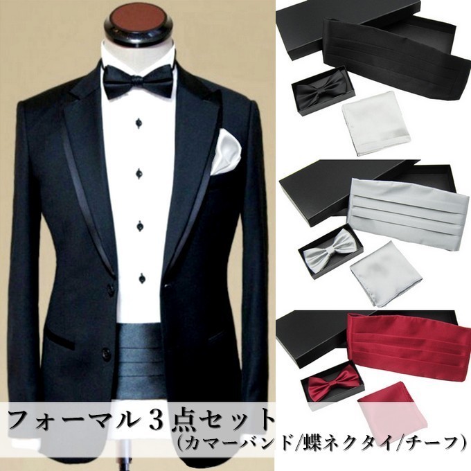 カマーバンド 蝶ネクタイ ポケットチーフ 3点セット タキシード メール便 対応 cb-003