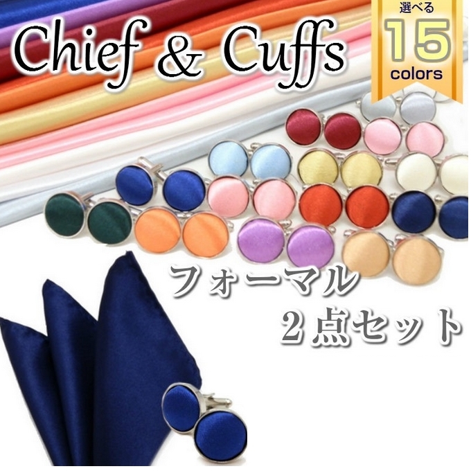 ポケットチーフ&カフス セット 無地 15柄 ccs-001