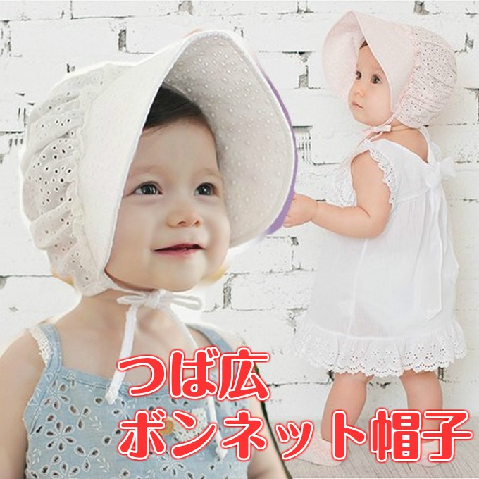 【期間限定メール便無料】帽子 ベビー つば広 ボンネット サンバイザー UV 紫外線 かわいい 春 夏 あご紐 出産祝い 赤ちゃん メール便 対応 khb-089