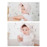 赤ちゃんを日差しからしっかり守る、さわやかなつば広帽子です。