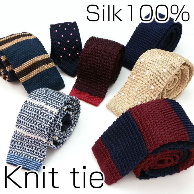 ニットネクタイ シルク スクエアエンド 夏 父の日 誕生日 ギフト プレゼント ボーダー 無地 ストライプ おしゃれ ntc-009