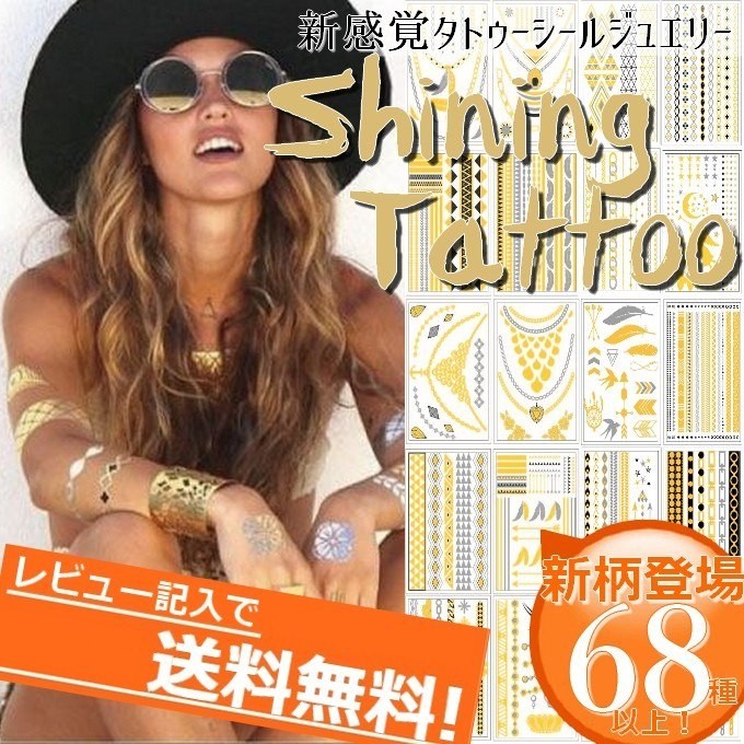 タトゥーシール 金 シャイニングタトゥー フラッシュタトゥー メール便無料 ボディペイント tsl-01