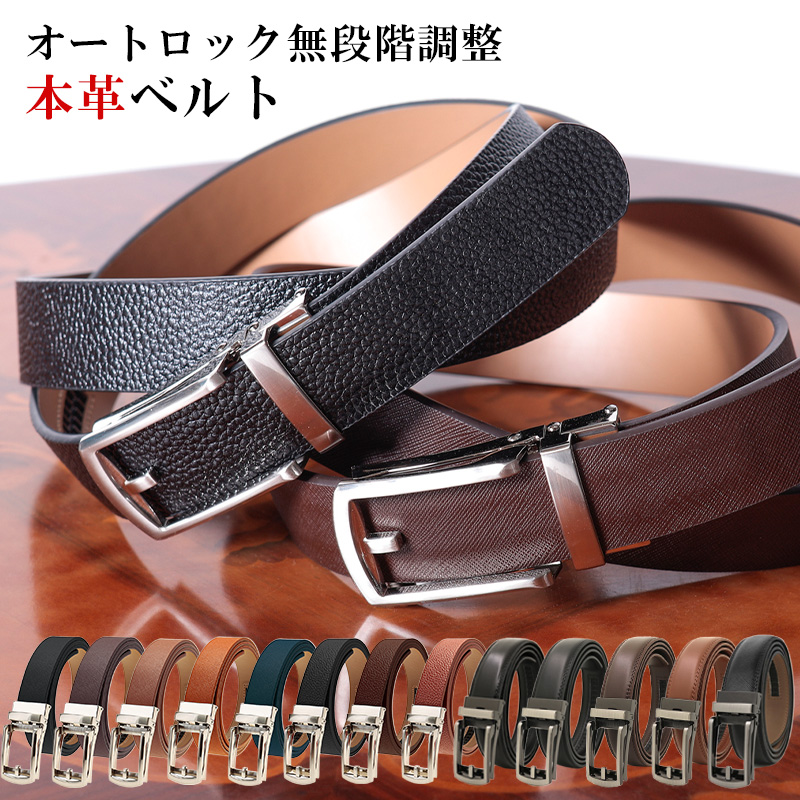 ベルト メンズ 本革 穴なし 微調整 ビジネス オートロック式 無段階調整 アジャスター バックル カジュアル 大きいサイズ おしゃれ 黒 男性用 高校生 社会人