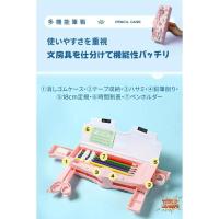 ペンホルダー、鉛筆削り、ハサミ、時間割表、消しゴム、テープ、18cm定規の7種類文房具をまとまている多機能ペンケースです。