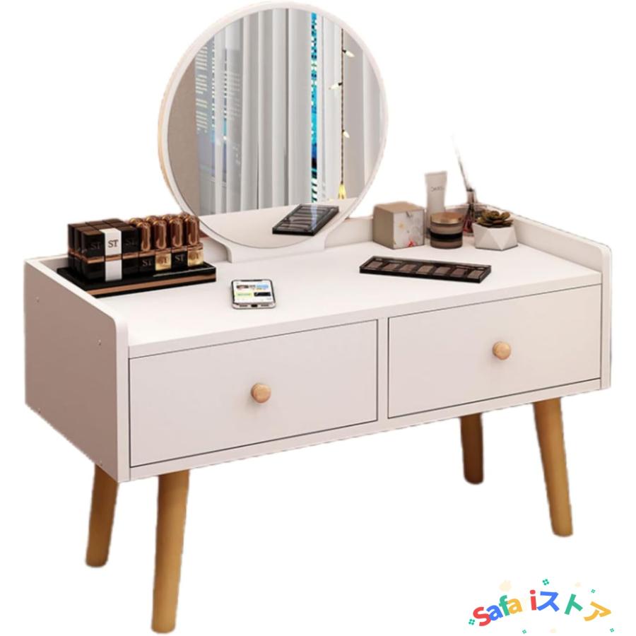 【幅広デスク・引き出し収納】広いデスクトップなので、何でも収納でき、気の向く空間になります。机の面は高い力を加えて、広い欄は設けて、効果的に物品が落ちることを防止して、使用は便利です。引き出しが2つあります,収納可能引き出し・細かな物または、割れやすい物、例えばアイシャドウパレット・ドライヤー。