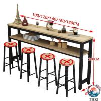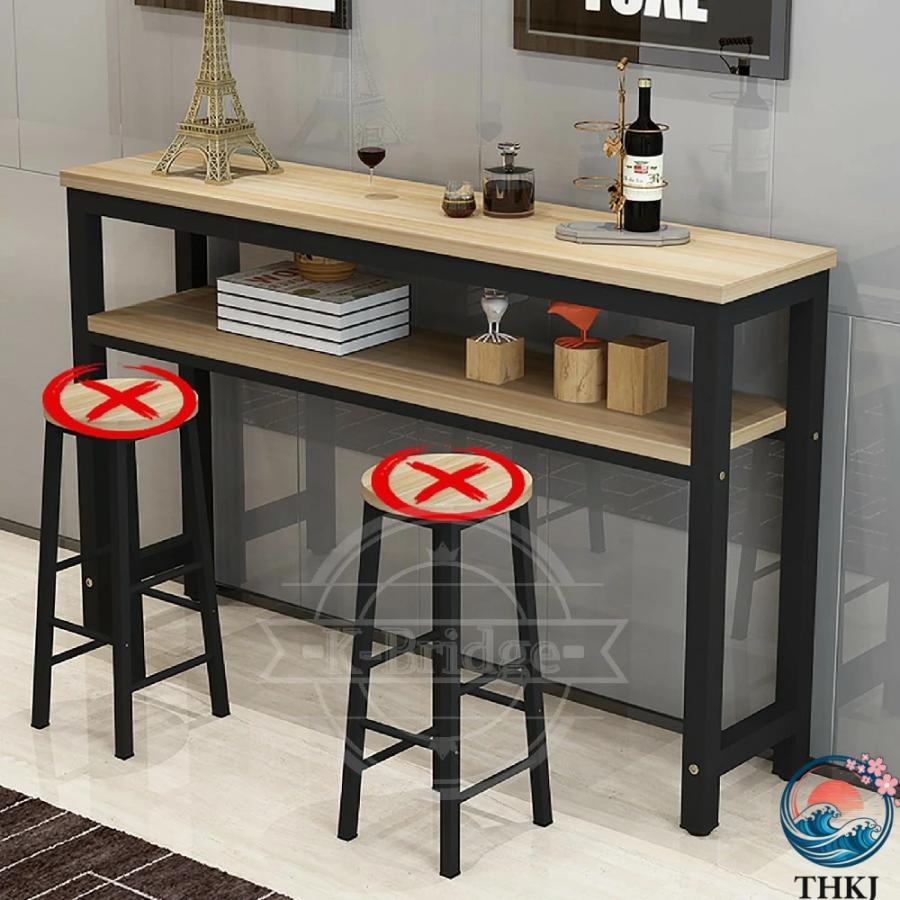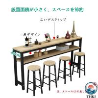 カウンターテーブル キッチンカウンター 省スペース バーカウンター二重層 収納ラック 長机 ハイテーブル 木製天板 スチール脚 家庭用、カフェ、ダイニング、バ