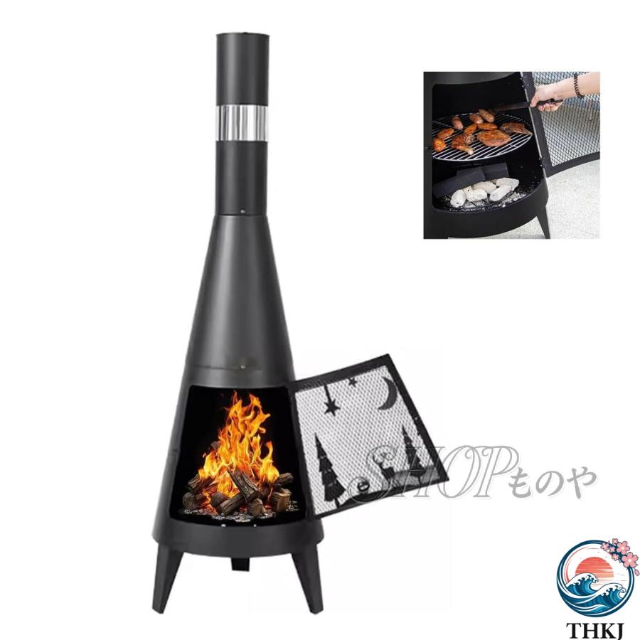 焚火台 大型 キャンプ用 家庭用薪ストーブ バーベキューネット付き アウトドア 薪暖炉 ロケットストーブ 二次燃焼 クッキング 600℃の高温に耐える 強力火力 軽