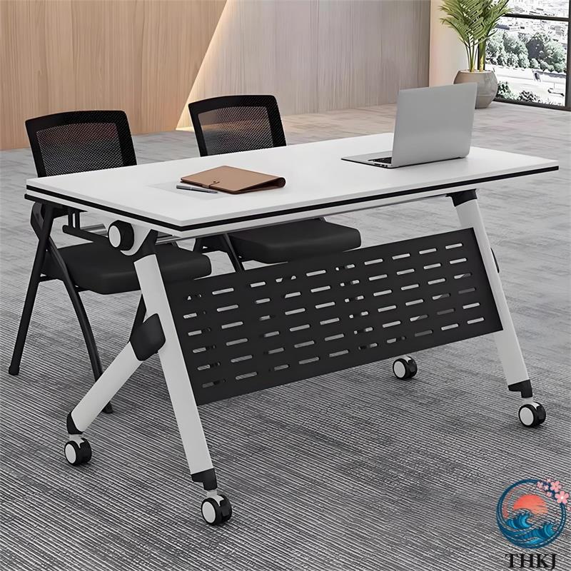 会議用テーブル オフィスデスク 商談用の会議テーブル THKJ ノブ式折りたたみ式 事務机 25mmデスクトップ ユニバーサルホイール付き おしゃれ 空間になじむ