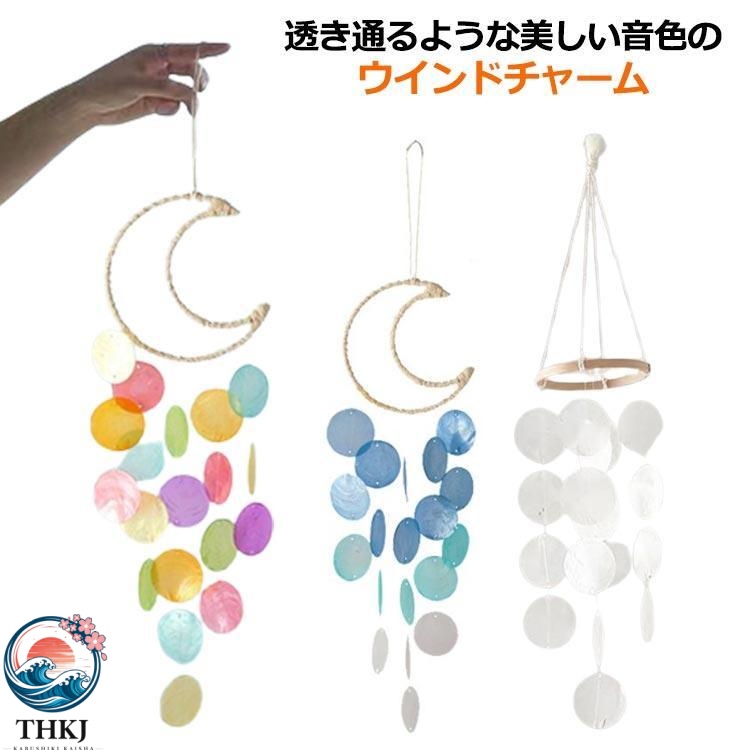 ウインドチャイム 風鈴 ウィンドチャーム 天然貝殻 カラフル THKJ ドアチャイム カピス貝 シェル 雑貨 吊り下げ インテリア おしゃれ 空間になじむ 快適