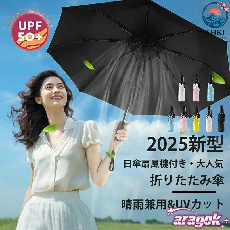 扇風機付き傘 日傘 折り畳み傘 ファン付き 充電式 完全遮光 8本骨 UVカット