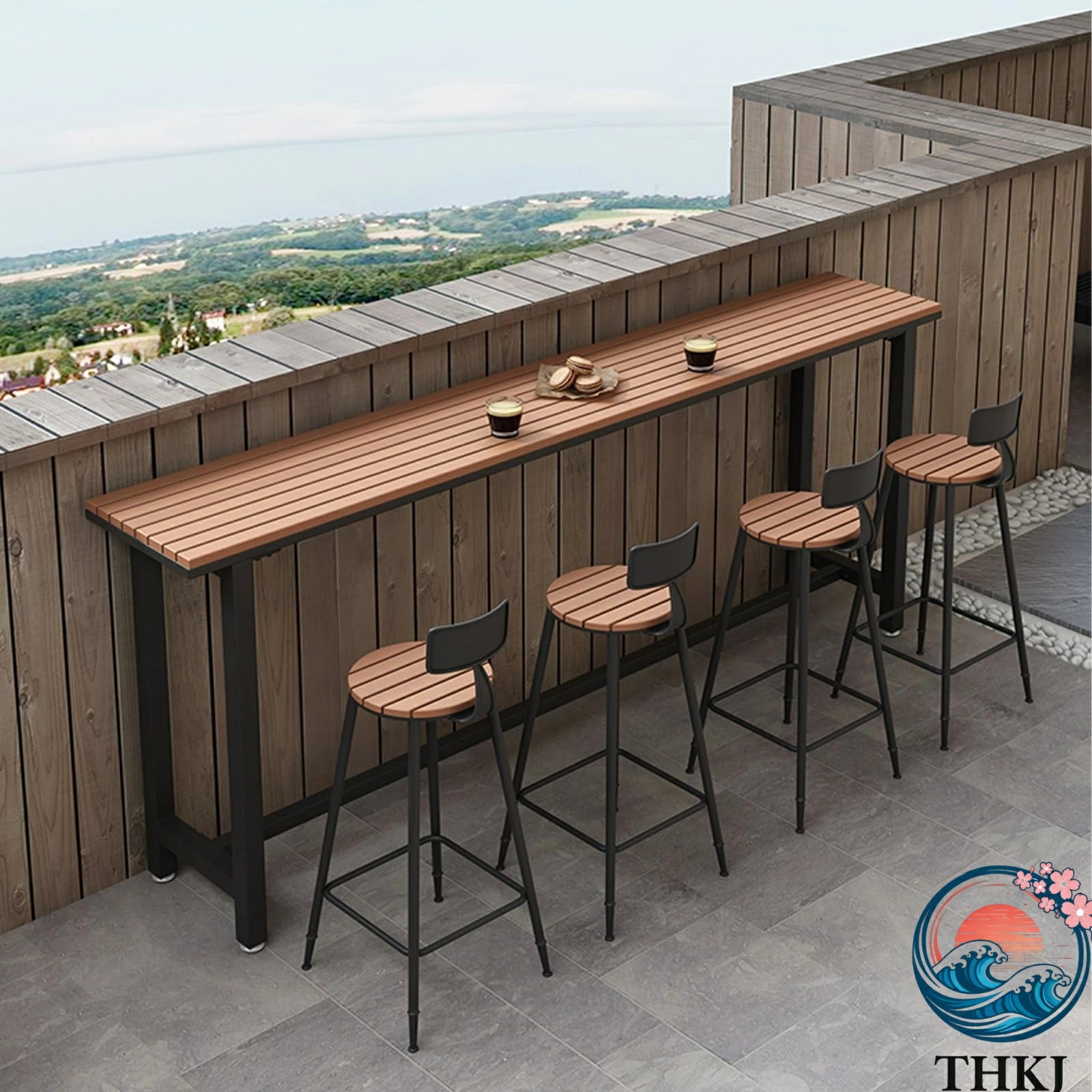 ? プラスチック木材素材: このバーテーブルはプラスチック木材で作られており、硬くて変形したり傷がついたり衝突したりしにくいです。透明で豊かな質感があらゆる空間に優雅さを添え、強力な耐荷重能力が長期間の性能を保証します。