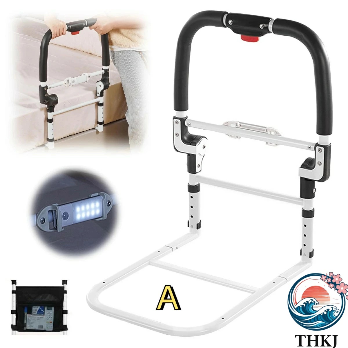 ベッドガード ベッド用手すり 柵 転落防止 夜間用ライト付 介護用サイドレール ベッドアーム 立ち上がり補助器具 折りたたみ式 多段階の高さ調整 ?????????? ベ