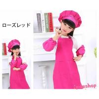 子供用エプロン 帽子付き ペアスリーブ付き 4点セット 100以下 100 120 150 無地 エプロン キッズ 子供 子どもエプロン 男の子 女の子 ゴム