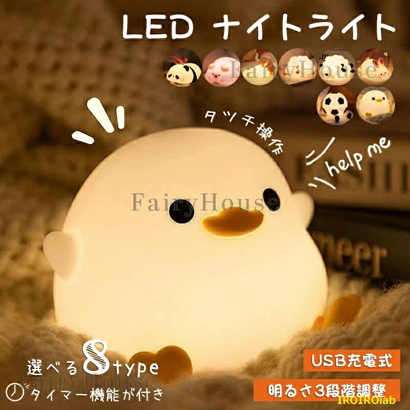 ナイトライト 授乳ライト タイマー機能 間接照明 LEDベッドサイドランプ 電球色 3段階調光 USB充電式 シリコン ふわふわ 置き型 常夜灯