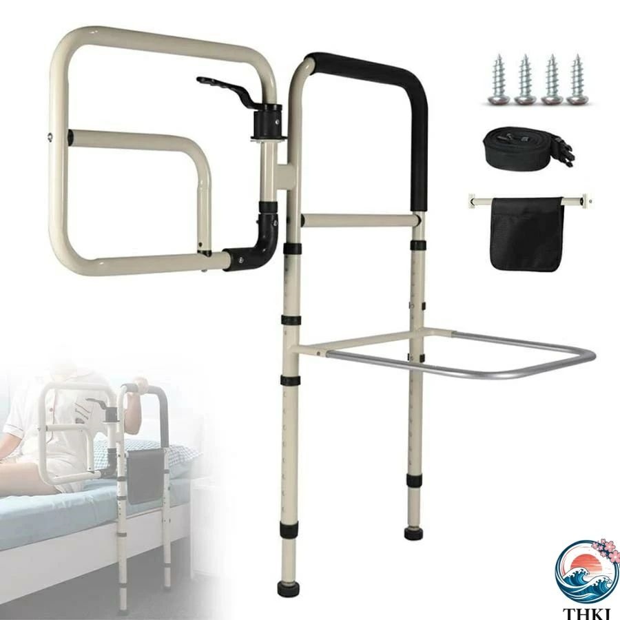 【頑丈なステンレススチールフレーム】頑丈なステンレススチールフレームは最大350ポンドまでサポートし、最適なバランスと安定性を保証します。さらに、人間工学に基づいて設計されたアームレストと滑り止めのゴム足が装備されており、高齢者、障害者、妊婦、または身体的制限や怪我のある人が補助なしで立ち上がるときに最大限の安全性を確保します。調節可能なベッドでの使用はお勧めできません。