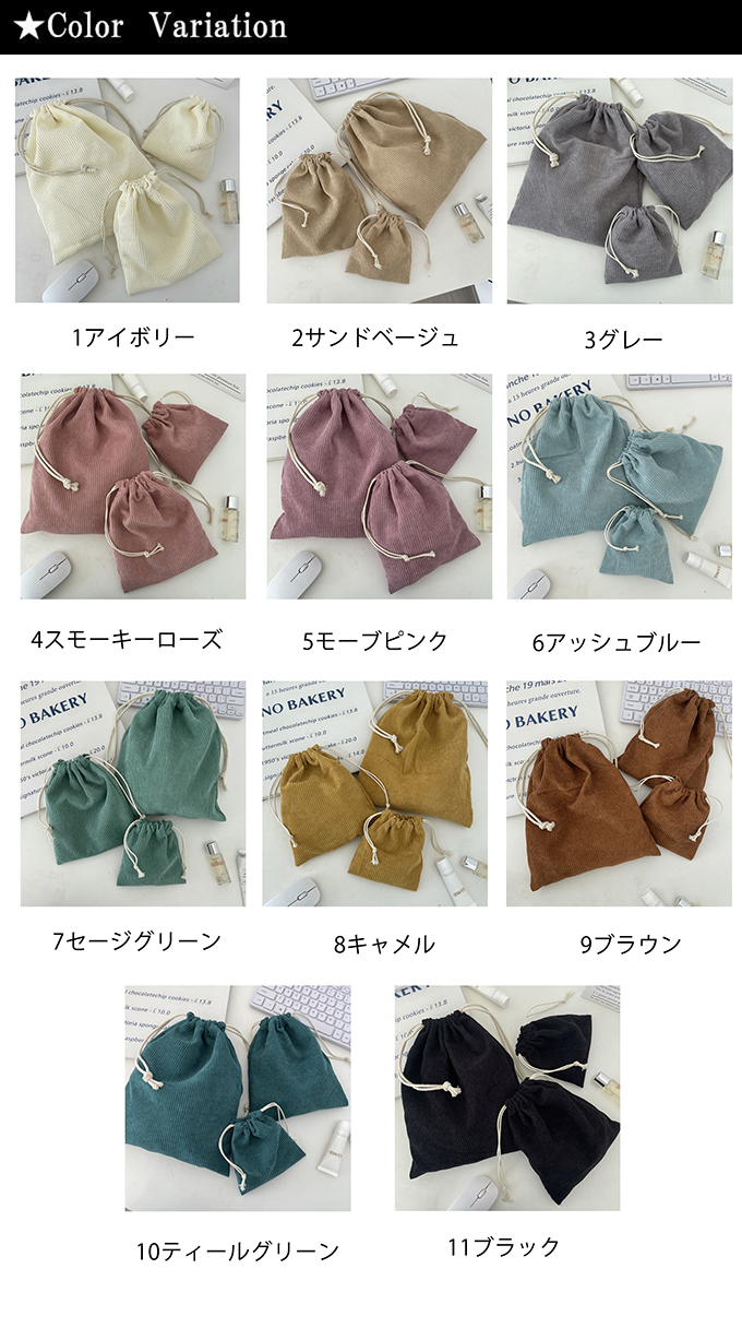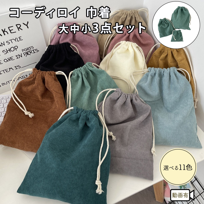 コーデュロイ 巾着大中小 3点セット