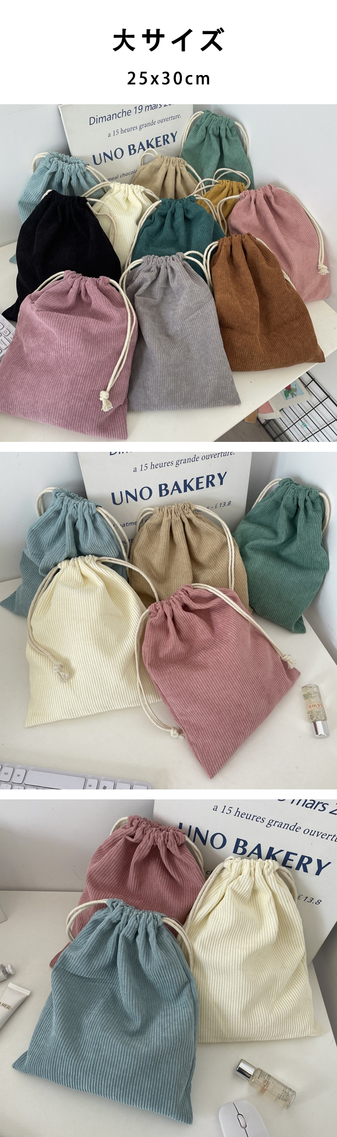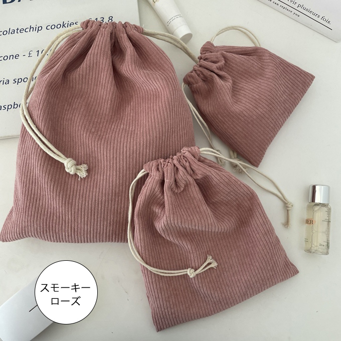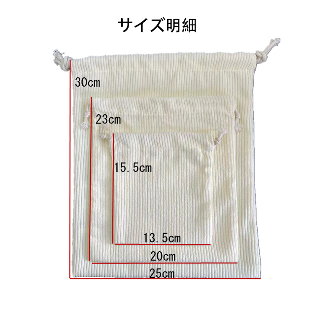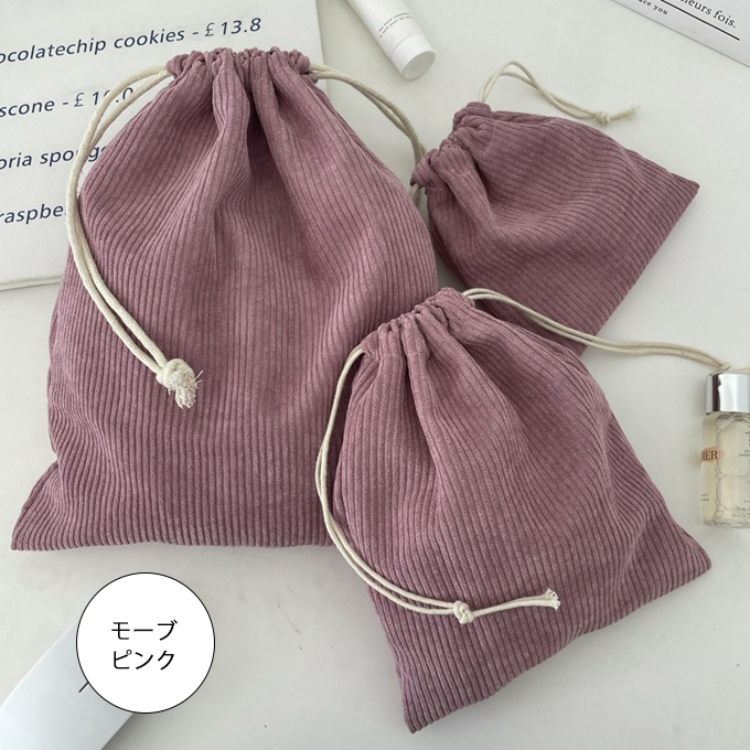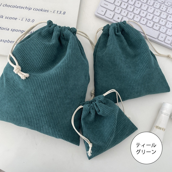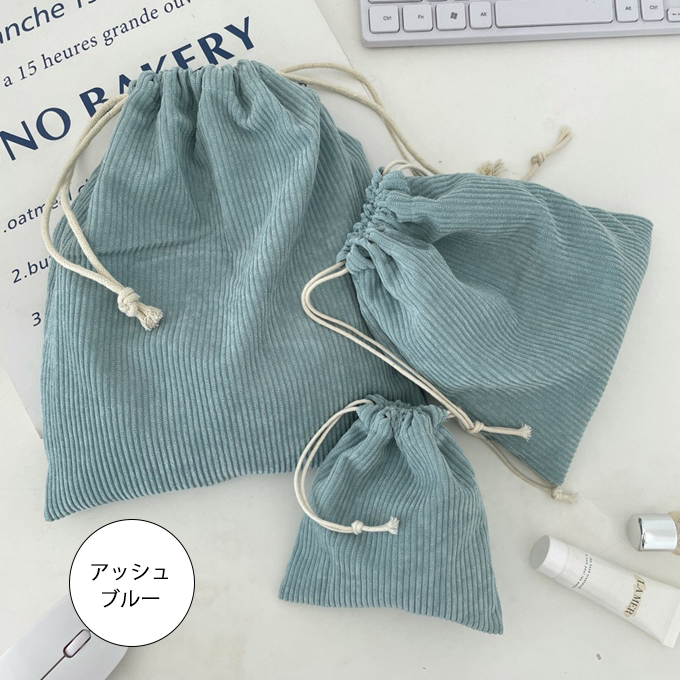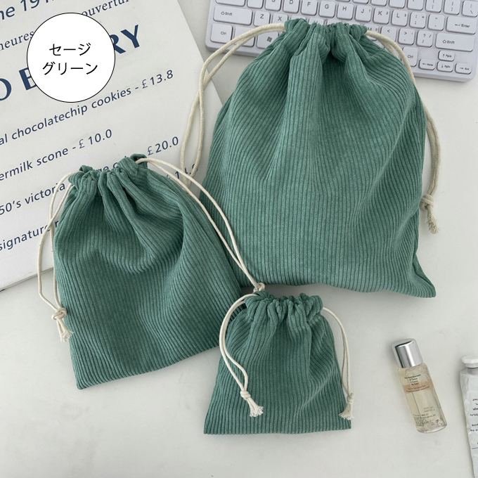 やわらかな手ざわりのコーデュロイ素材を使ったナチュラルで可愛い巾着3点セット