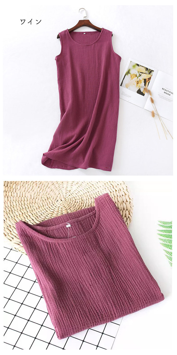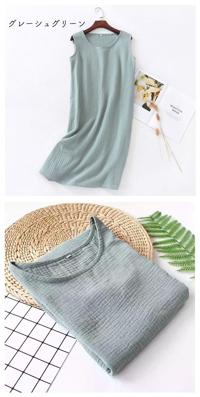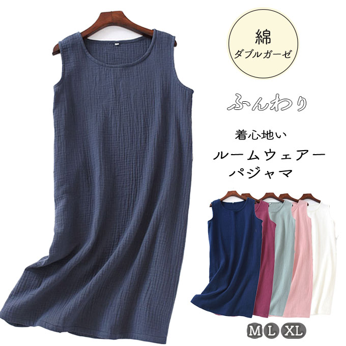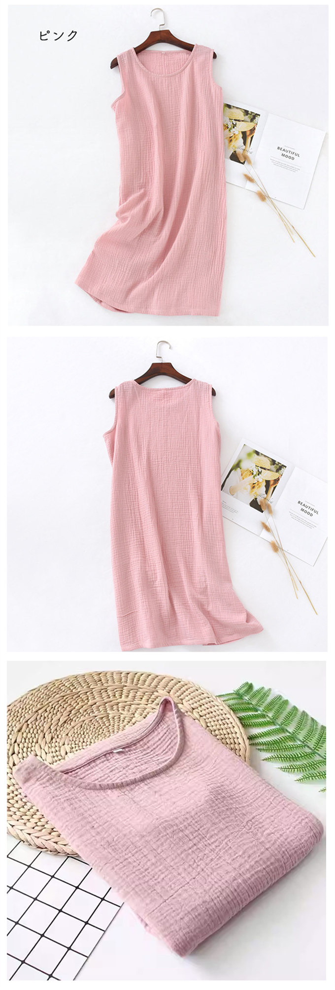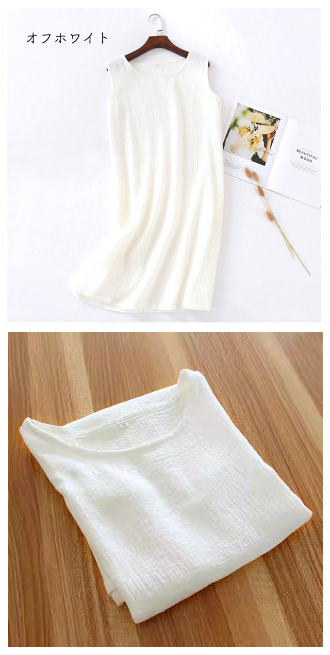 綿 ダブルガーゼ ワンピース 夏 ルームウェアー 部屋着 M L XL シンプル Aラインシルエット パジャマ ナィティ 被るだけ レディース綿 凹凸感 ホワイト 白 ピン