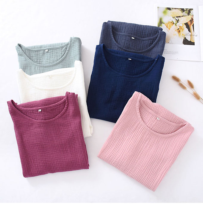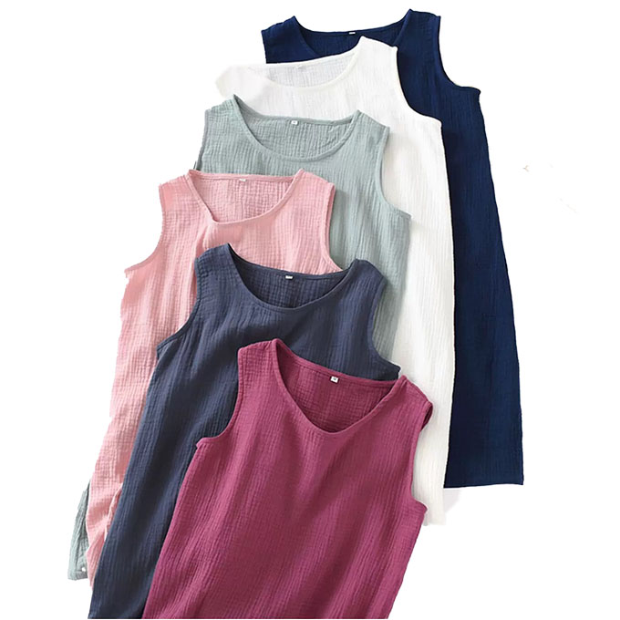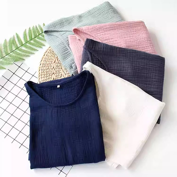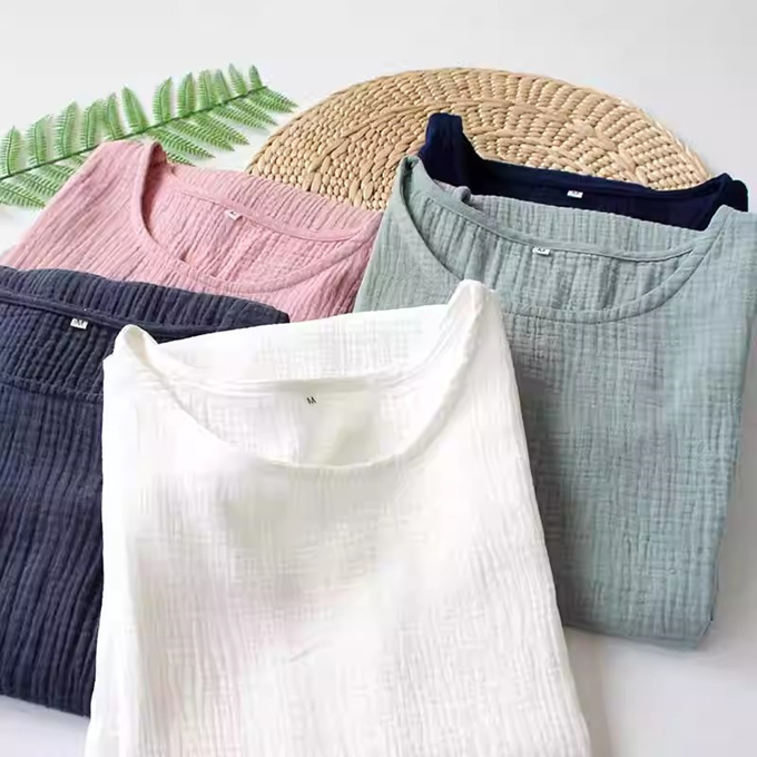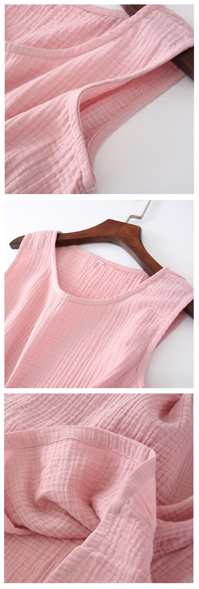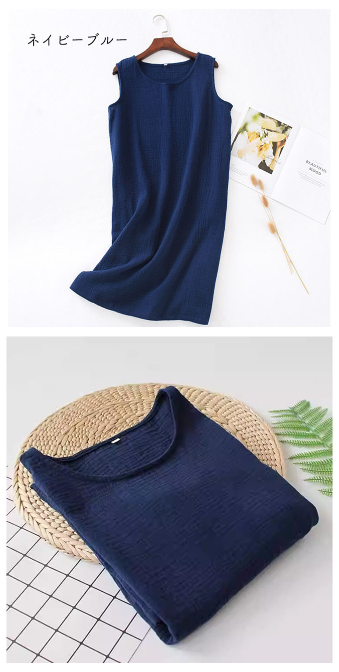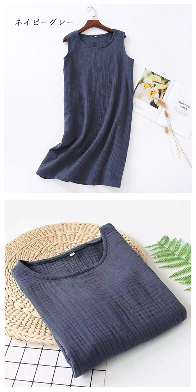 綿 ダブルガーゼ ワンピース 夏 ルームウェアー 部屋着 M L XL シンプル Aラインシルエット パジャマ ナィティ 被るだけ レディース綿 凹凸感 ホワイト 白 ピン