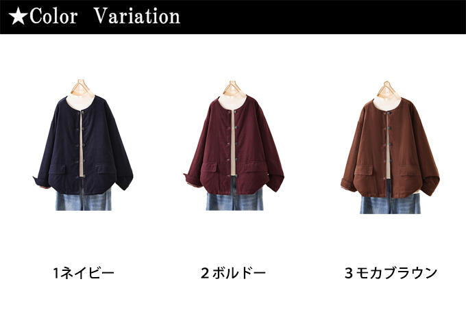 首まわりはすっきりとしたノーカラーデザイン