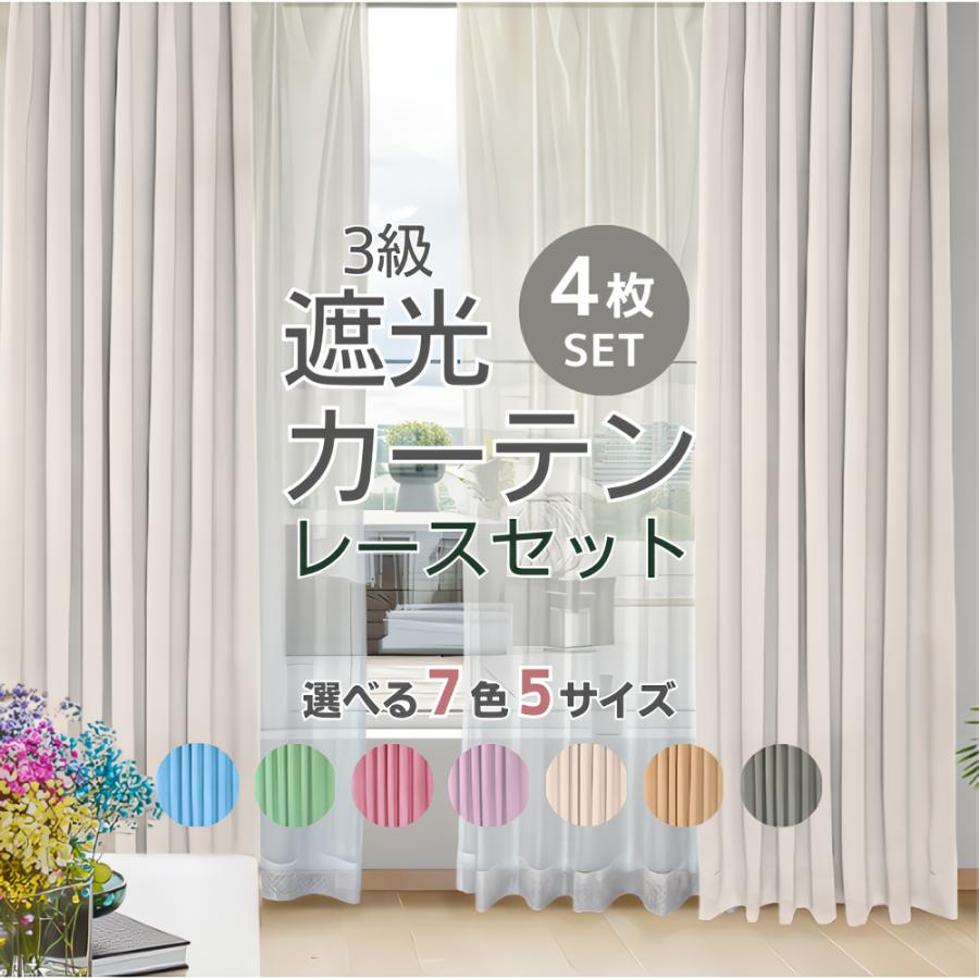 丁度良い 3級遮光 カーテン レース付 4枚セット 幅100cm 100×135 100×178 100×190 100×200 100×220 洗える 遮光 シンプル レースカーテン 4枚組 北欧 爆買