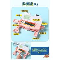 ペンホルダー、鉛筆削り、ハサミ、時間割表、消しゴム、テープ、18cm定規の7種類文房具をまとまている多機能ペンケースです。