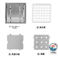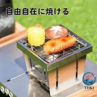 コンパクトで多機能:焼き網、灰受け板、炭板付きで、アウトドアBBQに最適。