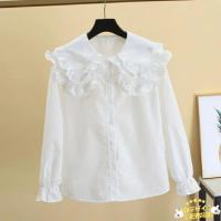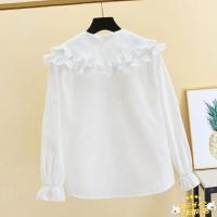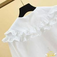 韓国子供服 春秋用 フリル付き長袖ブラウス シャツ ビッグカラーデザイン 無地ホワイト ネック 女の子 女児 キッズ ジュニア ユニセックス 11