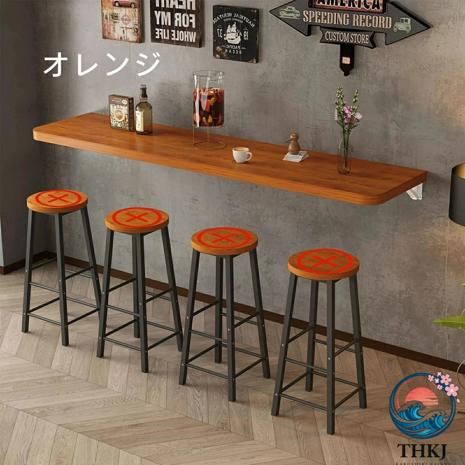 壁掛け折り畳み カウンターテーブル ハイテーブル 無垢材素材太いスチールフレーム組み立て簡単 省スペ 家庭用、カフェ、バーに適しています 強力な耐荷重性(椅