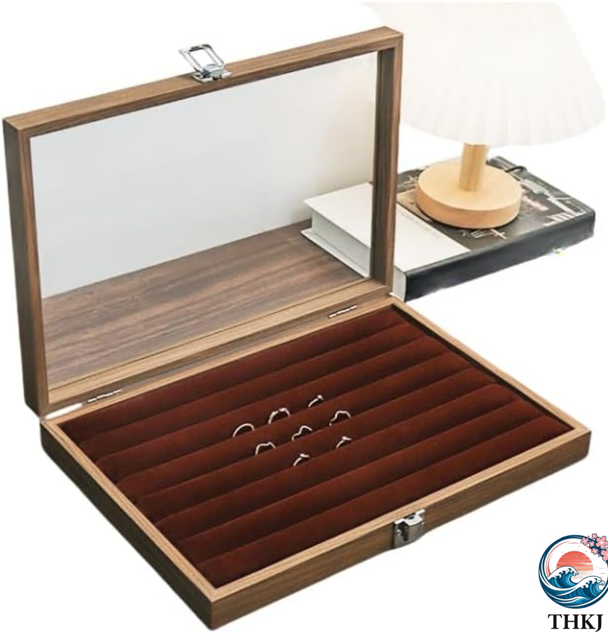 アクセサリーケース 指輪ボックス 木製 蓋付き ベルベット調 アクセサリー 指輪 ピアス リングケース 収納 ボックス 小物入れ ディスプレイ用 携帯用 イヤリング