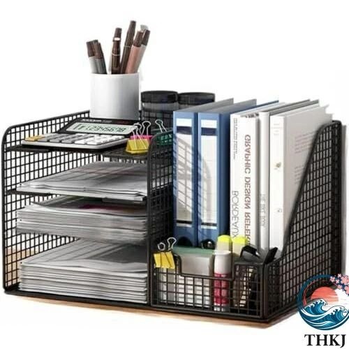 卓上収納ラック 引き出し付き ファイルボックス 4仕切りペン立て付き レタートレー 書類棚 金属製 メッシュ ペン 新聞/雑誌/A4ファイル/フォルダ/書類/小物入れ