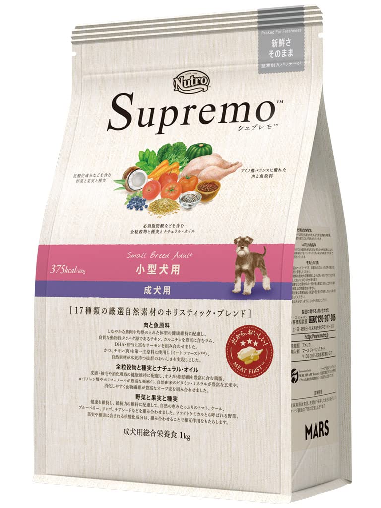 Nutro ニュートロ シュプレモ 小型犬用 成犬用 1kg ドッグフード【自然素材/着色料 無添加/消化に良い/お試しサイズ/小粒】