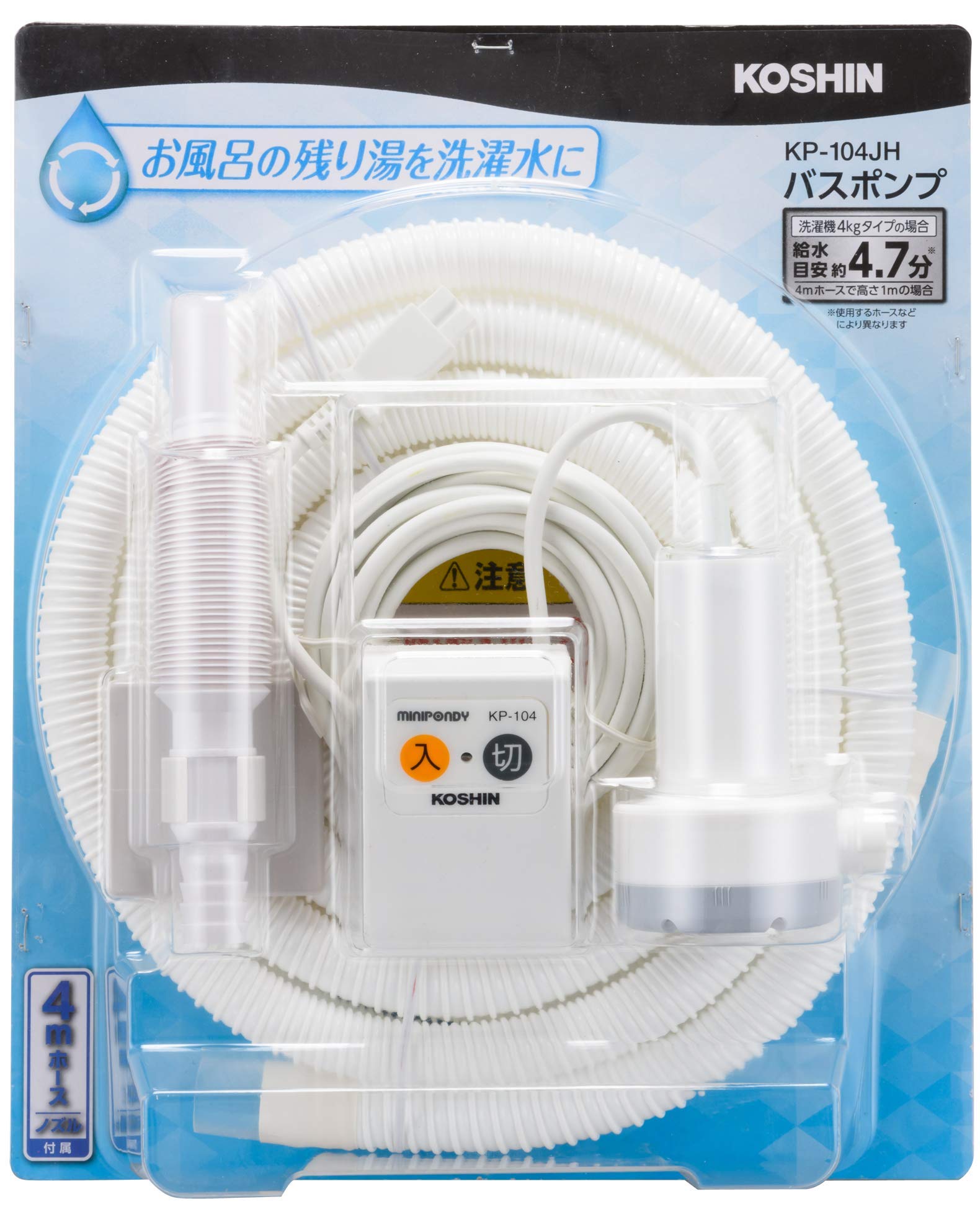 工進(KOSHIN) 家庭用バスポンプ AC-100V KP-104JH 4m ホース付 風呂 残り湯 洗濯機 最大吐出量 11L/分 (付属4mホ
