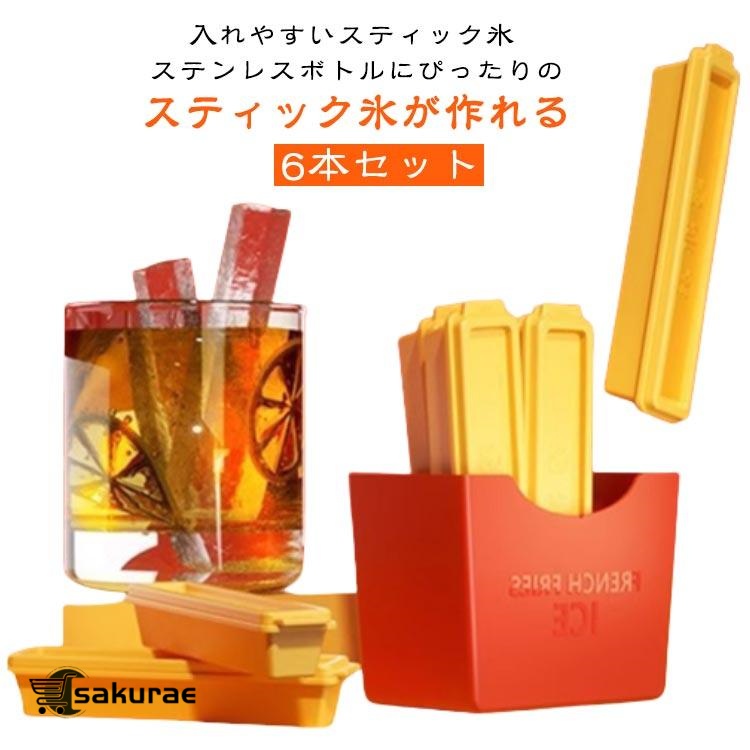 製氷皿 6本セット 収納ケース付き ステンレスボトルアイストレー マグネット 製氷器 細口タイプ 蓋付き ペットボトル スティック氷 棒状 細長い ス