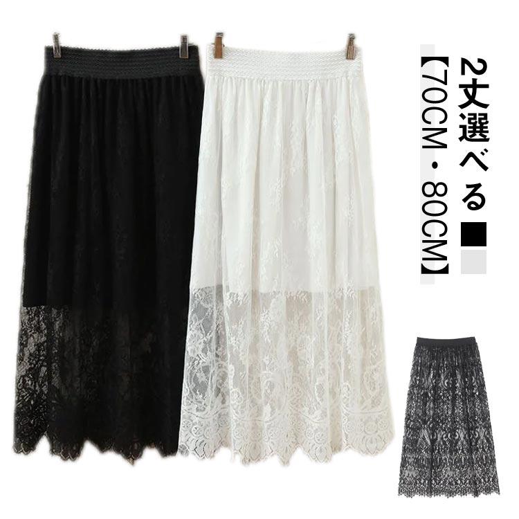 アンダースカート 春夏 裾レース ブラック 70cm 40代 インナー 80cm 体型カバー 透けない スカート ゆったり レース 白 見せる 重ね着
