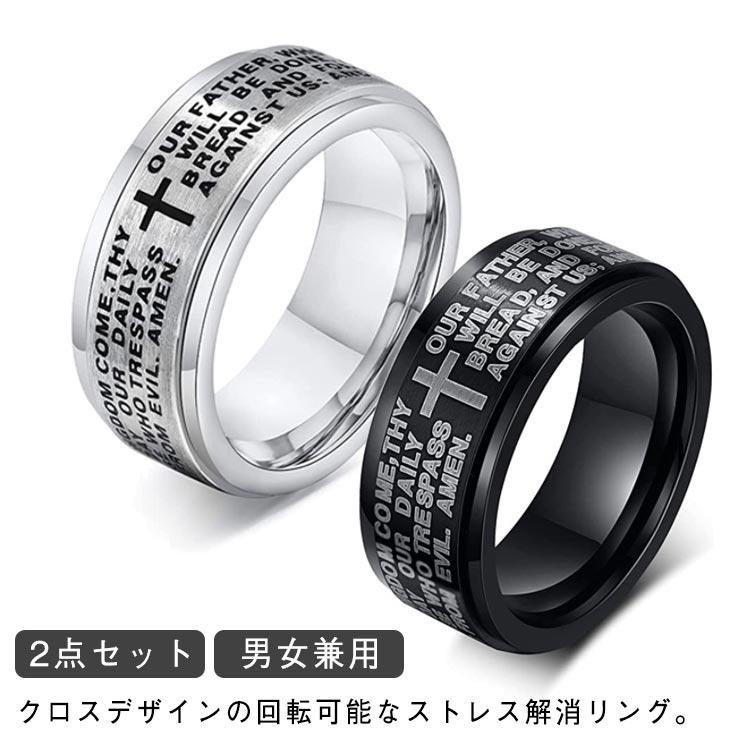 十字 2点セット 指輪 ストレス解消 クロス リング ストレス解消リング 回転可能 メンズ レディース ペアリング 原宿風 ストリート 2点セット 回