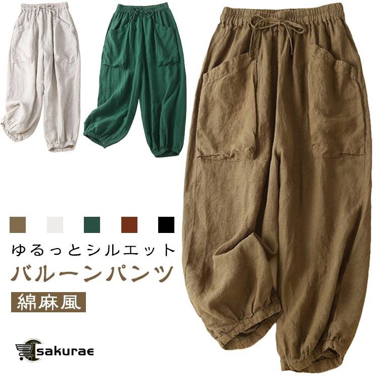 バルーンパンツ レディース サルエルパンツ 夏 七分丈 ロングパンツ 綿麻風 バルーン コクーンパンツ 大きいサイズ ゆったり コットン混 綿混 パン