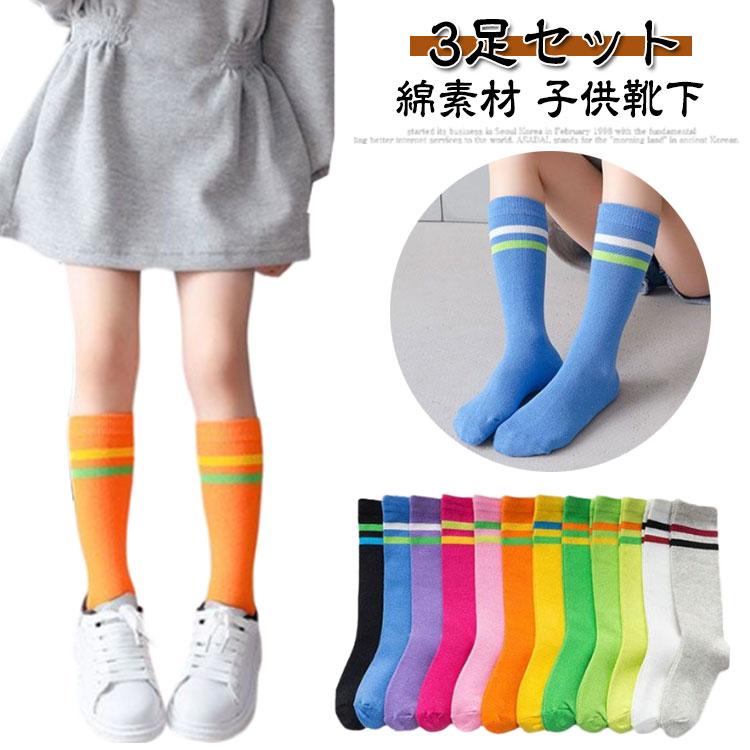 子供靴下 ライン 男の子 ベビー キッズ ジュニア 3足セット 靴下 子ども ハイソックス ロング丈 春 夏 秋 冬 ダンス衣装 ボーダーソックス 女