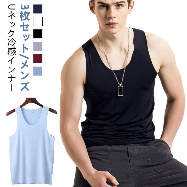 夏 Uネック シームレス 肌着 接触冷感 ストレッチ 通気 タンクトップ トップス 吸汗速乾 3枚セット 接触冷感 ノースリーブ tシャツ ひんやり
