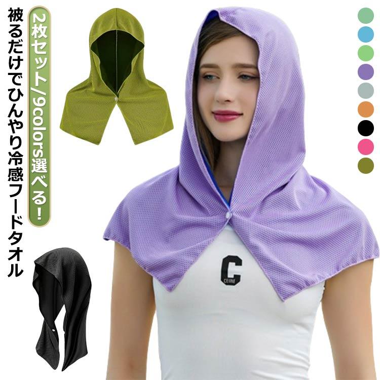 フードタオル クールタオル 冷感 フード 60×30cm タオル 2枚組 冷却 冷感 冷却タオル 熱中症対策 涼しい 熱中症対策 スポーツ UVカット