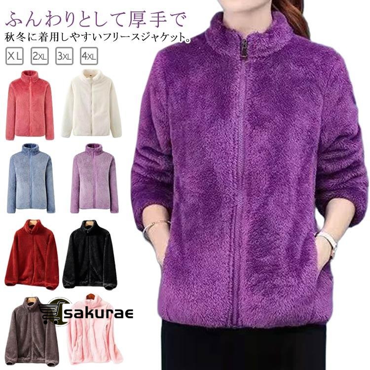 無地 レディース フリース ボア ジャケット 防寒 厚手 アウター 長袖 ボアコート ブルゾン 暖かい ショート丈 秋冬 ジップアップ フリースジャケ