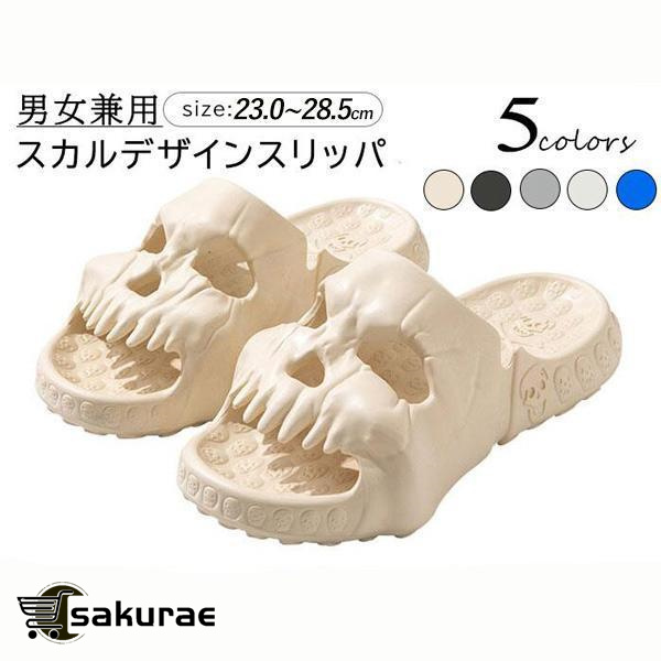 スリッパ スカルデザイン カッコイイ 頭蓋骨 厚底 サンダル コンフォートサンダル レジャー カジュアル ユニーク EVA 超軽量 通気性 耐折り畳み性 滑り止め 防水 5色展開 24~28cm お出かけ ビーチサンダル 旅行 海 di123x0x0t2
